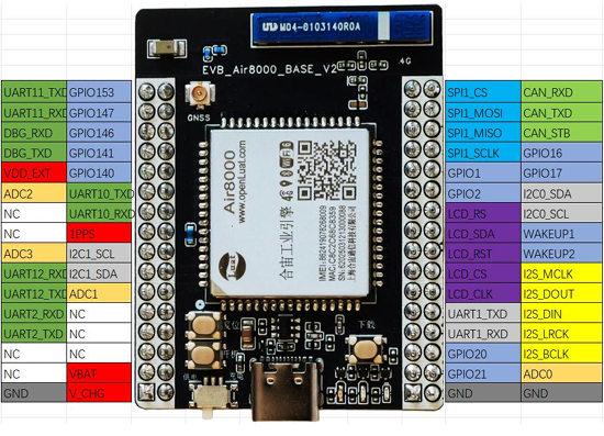 1、Air8000核心板一块(Air8000系列模块的核心板接线方式相同,这里以Air8000为例)