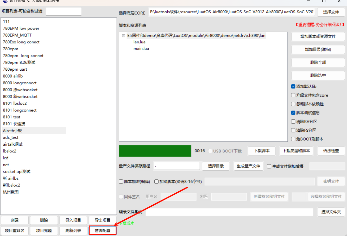 3.下载到 Air780EGH 核心板中;