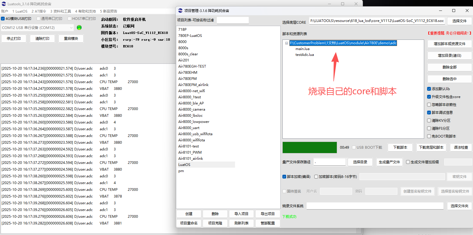 归属完毕后,就可以烧录自己原本的固件和脚本