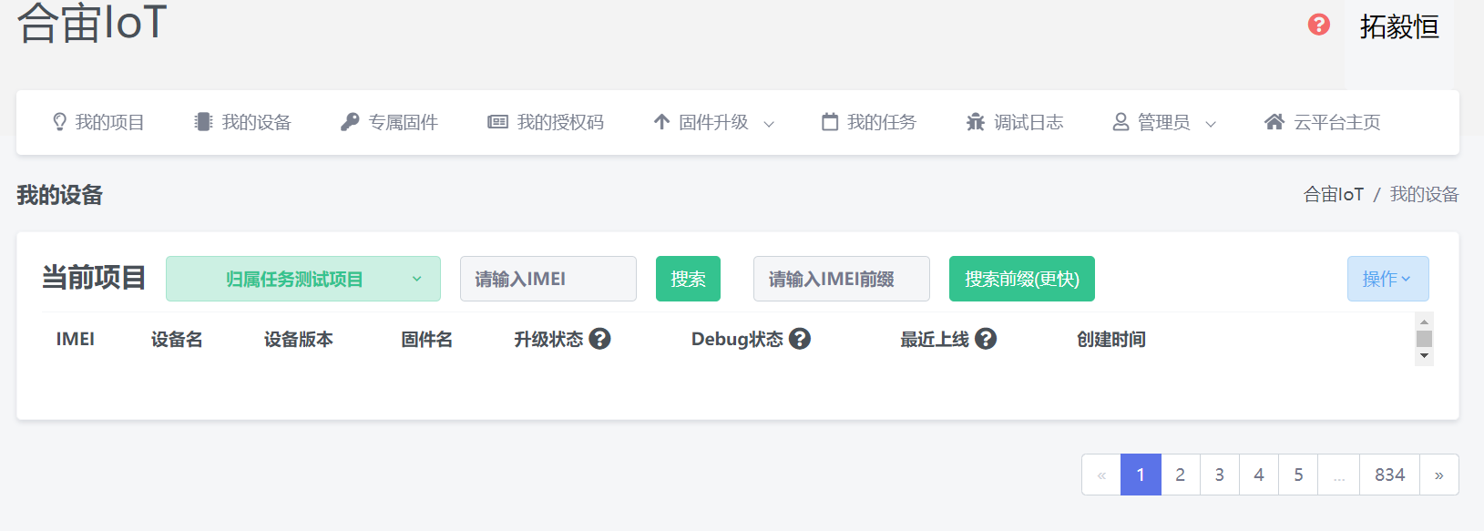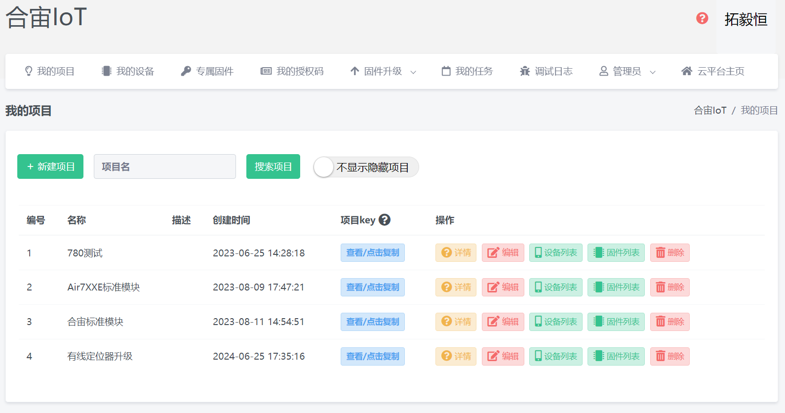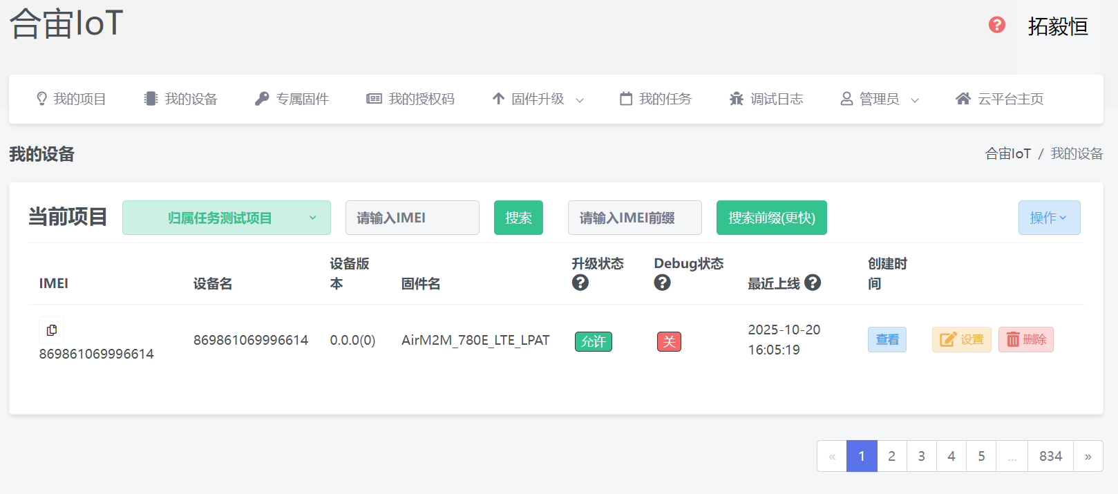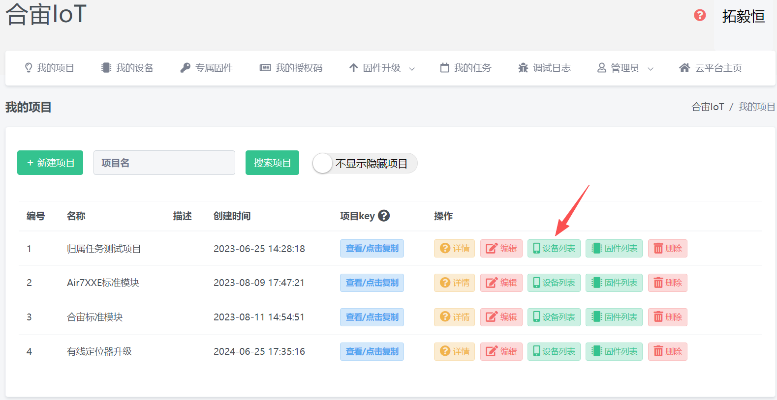 此时这个设备就存在于项目名下了,后续远程升级和购买 LBS 服务都可以顺利进行了。