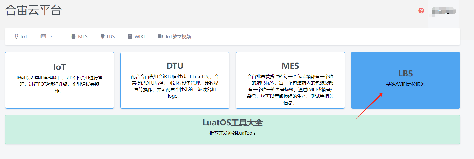 首先登录平台 iot.openluat.com,点击 LBS 服务