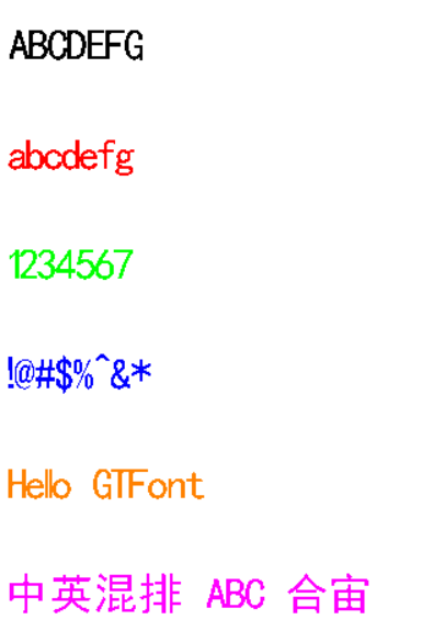 默认使用12号中文字体 | 显示效果 | 可设置颜色 | 使用gtfont字库可设置字体大小可设置字体大小 |